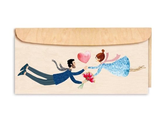 Karnet drewniany DL z drewnianą kopertą Ślub Para