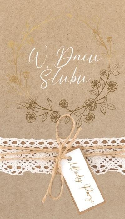 Karnet okolicznościowy z kopertą i życzeniami w środku.