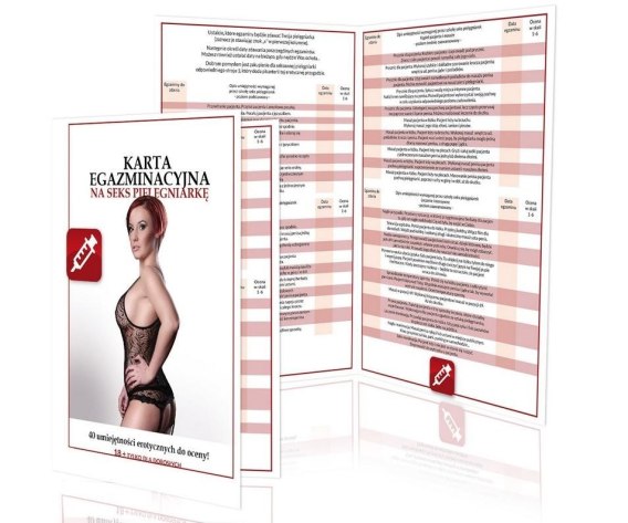 Karta egzaminacyjna na seks pielęgniarkę to erotyczna przygoda, w której partner wciela się w rolę egzaminatora-pacjenta, a partnerka w rolę pielęgniarki. Bardzo uczynnej i empatycznej pielęgniarki, która staje przed swoim egzaminatorem, wyposażonym w listę umiejętności wymaganych przez oficjalny program nauczania seks pielęgniarek. To egzaminator wcielający się w pacjenta decyduje, w jakiej kolejności będą wykonywane zadania egzaminacyjne i wystawia pielęgniarce odpowiednią ocenę. Jeżeli ocena będzie niska, partnerka może próbować starać się o poprawienie swojego wyniku - do czego zachęcamy. Polecamy sprezentowanie pielęgniarce odpowiedniego stroju, by przygoda była jeszcze bardziej smakowita.