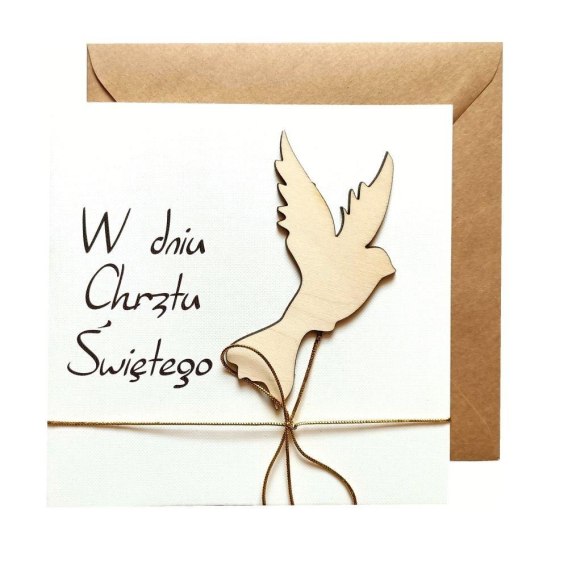 Kartka okolicznościowa z okazji Chrztu Świętego o treści: Niech Bóg Cię błogosławi, Niech przy Tobie zawsze trwa, Niechaj będzie Bożym dziełem Każda chwila Twa. Z okazji Chrztu Świętego Z najlepszymi życzeniami