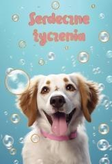 Karnet okolicznościowy z kopertą i życzeniami w środku.