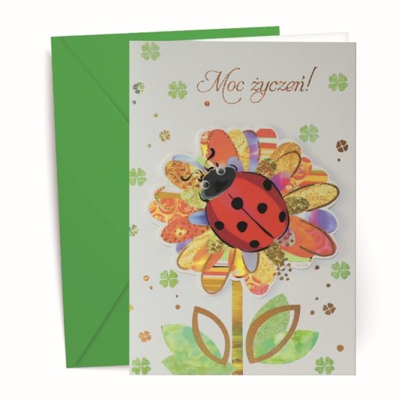 Kartka z kopertą, z życzeniami na różne okazje. Opakowana folią open.