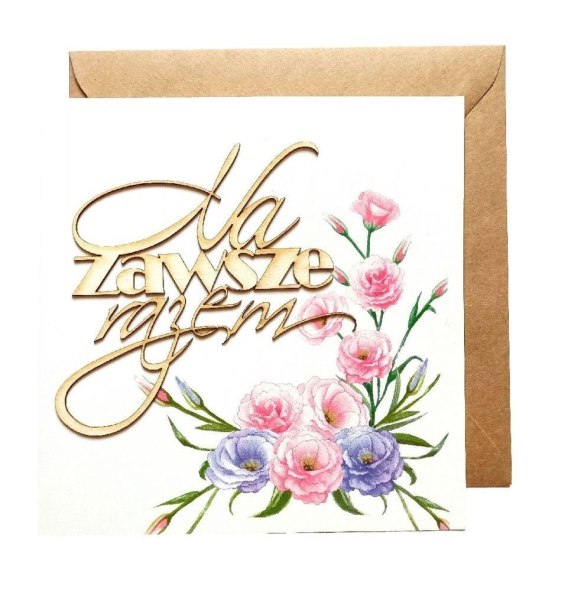 Kartka okolicznościowa z okazji Ślubu o treści: "Bądźcie dla siebie i ziarnem pieprzu, i szczyptą soli, i tym, co cieszy, i tym, co boli. Trwajcie razem, gdy miłość w rozkwicie i gdy ku jesieni swe kroki skieruje życie."