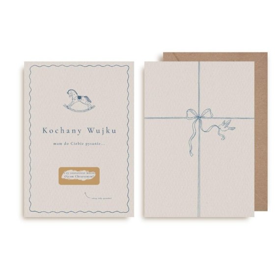 Kartka dwustronnie zadrukowana, w komplecie z kopertą w stylu kraft.