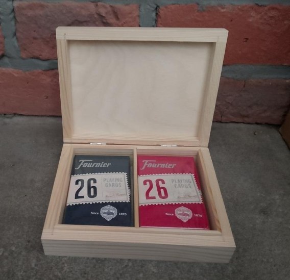 Komplet dwóch talii kart Fournier No 26 w drewnianej szkatułce.
