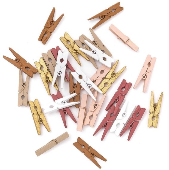 Dekoracyjne mini klamerki w stonowanych, eleganckich odcieniach różu, beżu i złota.