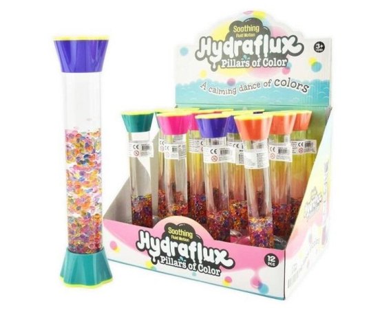 Klepsydry są często wykorzystywane w terapii sensorycznej. Mają działanie uspokajające i odstresowujące. Dostarczają także wielu ciekawych wrażeń wizualnych.