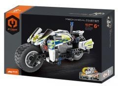 Klocki przedstawiają motocykl policyjny - zaprojektowany, by stać na straży porządku. Pojazd posiada funkcję pull and back - pociągnij auto do tyłu - puść i obserwuj jak pędzi za złoczyńcami!