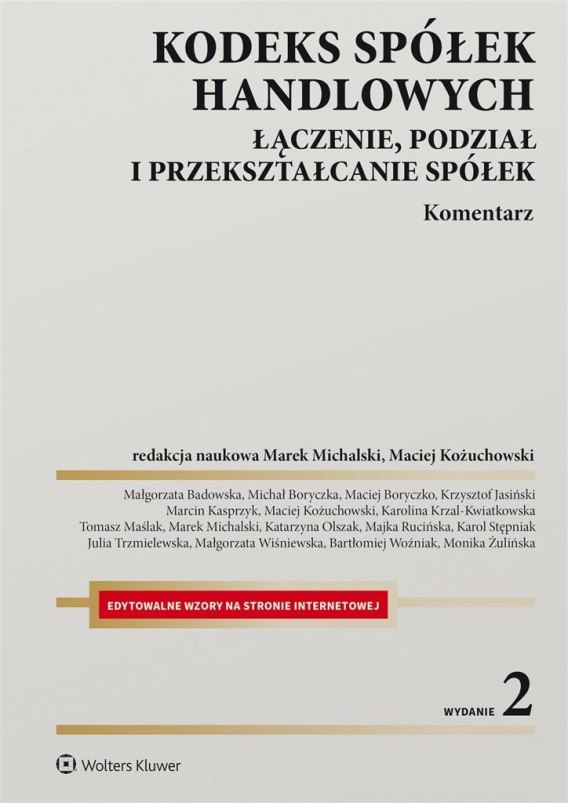 Komentarz szczegółowo omawia instytucje prawa handlowego dotyczące transformacji (zmian) formy organizacyjno-prawnej podmiotów gospodarczych w postaci: łączenia, podziału i przekształcania spółek handlowych. Nacisk został położony na aspekt praktyczny publikacji, tj. zagadnienia związane z faktycznym zastosowaniem analizowanych regulacji prawnych w codziennym obrocie gospodarczym. Autorzy - przede wszystkim doradcy transakcyjni - korzystając ze swojego bogatego doświadczenia w obsłudze podmiotów gospodarczych, przybliżyli tę skomplikowaną problematykę. Drugie wydanie komentarza uwzględnia nowelizację Kodeksu spółek handlowych, która weszła w życia 15.09.2023 r. i istotnie zmieniła przepisy regulujące transgraniczne i krajowe reorganizacje korporacyjne. W publikacji omówiono m.in. nową instytucję podziału przez wyodrębnienie, a także transgraniczny podział i przekształcenie. Uwzględniono również wprowadzenie do polskiego porządku prawnego prostej spółki akcyjnej oraz możliwość objęcia transformacjami spółki komandytowo-akcyjnej. Analizę poszczególnych regulacji prawnych uzupełnia zbiór wzorcowych dokumentów i pism mających zastosowanie w procedurach łączenia, podziału i przekształcania spółek handlowych. Opracowanie jest przeznaczone dla menedżerów, przedsiębiorców, a także adwokatów, radców prawnych i sędziów. Zawarte w publikacji wzory pism są dostępne w wersji elektronicznej (https://www.profinfo.pl/materialy-dodatkowe). Wzory można modykować i dostosowywać do indywidualnych potrzeb.