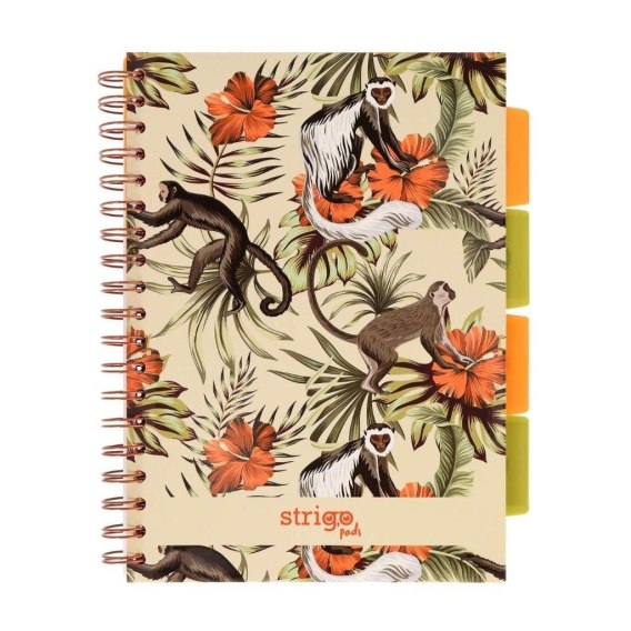 Oto Kołozeszyt Strigo Pads z kolekcji Tropiki w formacie B5 idealne połączenie designu i praktyczności. Motyw małpek to wyjątkowy akcent, który wyróżni Twoje notatki na tle innych!