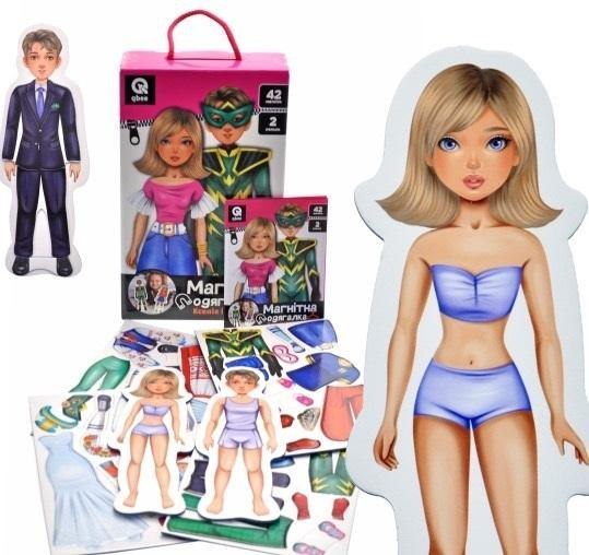 Ksenia i Marko to magnetyczna gra w ubieranie firmy qbee, która pozwala dzieciom tworzyć różne stylizacje dla dwóch lalek o wysokości 24 cm: chłopca Marka i dziewczynki Kseni. W zestawie znajdują się 42 magnesy z elementami ubioru, dzięki czemu każda lalka może zmieniać swój styl w zależności od sytuacji. Dla Marka dostępnych jest 5 stylizacji: piłkarz, pan młody, superbohater, strój narodowy i styl swobodny. Ksenia ma 6 różnych stylów: odzież codzienna, styl jazdy na rolkach, strój narodowy i inne opcje na różne wydarzenia.