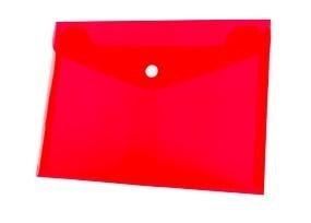 Koperta PP na zatrzask, mieszcząca format A4. Wymiary koperty: 330x235 mm, grubość: 0,14 mm. Czerwona. Opakowanie: folia 12 sztuk.
