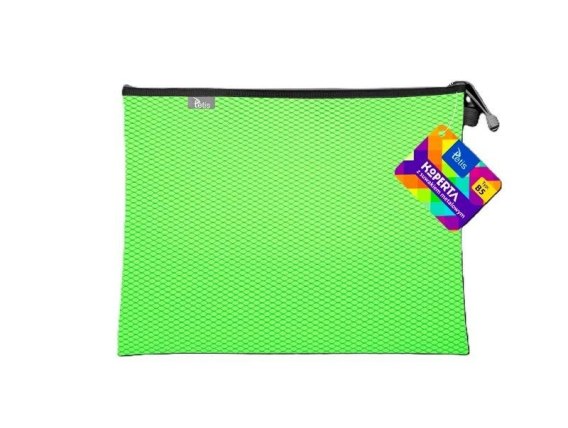 Koperta z suwakiem metalowym, mieszcząca format B5. Miękkie i elastyczne tworzywo. Wymiary koperty: 295x215 mm, grubość: 0,5 mm. Opakowanie: folia 1 sztuka