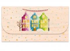 Ozdobna drewniana koperta upominkowa. Wyprodukowana na Litwie.