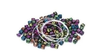 Koraliki literki + sznurek 1 m waga: 20 g kolor: czarne kostki i kolorowe literki