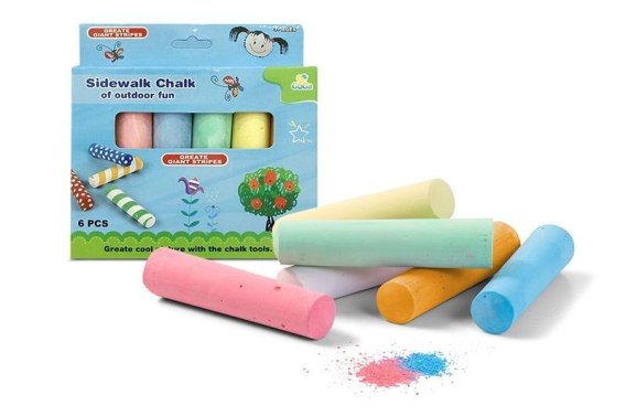 W zestawie: kredy chodnikowe w 6 kolorach, wym. opk: 14 x 14 x 2,5 cm., 3+