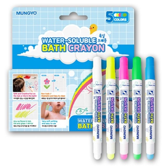 Proste w użyciu kredki w postaci sztyftu wysuwanego z obudowy za pomocą pokrętła. Piszą niezwykle miękko , do stosowania na wszystkich powierzchniach. Zestaw składający się z kredek w pięciu kolorach dedykowany do bezpiecznej i kreatywnej zabawy podczas kąpieli w wannie lub na kafelkach w łazience. Zmywalne wodą i łatwe do czyszczenia. Nietoksyczne, zgodne z obowiązującymi normami.