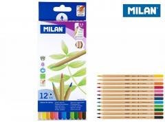 Kredki sześciokątne MILAN 12 kolorów w drewnianej oprawie. Grafit o średnicy 3,3 mm, miękki. System ochrony rysika LPS zwiększający odporność na złamanie. Wysokiej jakości pigmenty w żywych, intensywnych kolorach, odporne na działanie światła.