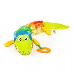 Mięciusi krokodyl kryje w sobie wiele niespodzianek! Oskar posiada ukrytą piszczałkę i grzechotkę oraz doszyty gryzaczek w kształcie serduszka, który z pewnością przyda się podczas ząbkowania. Ciałko krokodyla uszyte zostało z materiałów o zróżnicowanych fakturach, a eksplorowanie ich pozwoli najmłodszym rozwijać zdolności poznawcze. Brzuszek Oskara zdobi miarka w centymetrach i calach, którą można wykorzystać do wesołych zdjęć dziecka z zabawką, a gdy maluch podrośnie - do nauki mierzenia.