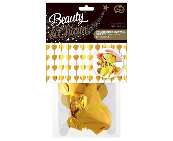 Kurtyna B&C serca metaliczna złota 100x200cm