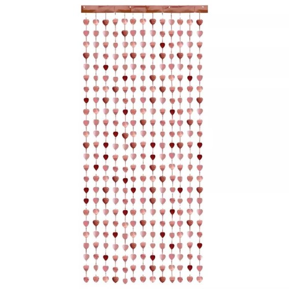 Kurtyna - Serca wykonana z folii w kolorze różowego złota, szerokość ok. 100 cm, długość ok. 245 cm