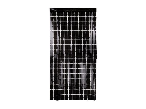 Kurtyna Party Kwadraty metalizowana w kolorze czarnym, szerokość ok. 100 cm, wysokość ok. 200 cm.