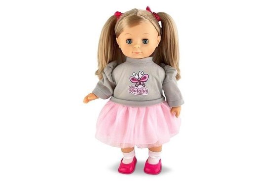 Lalka miękka 39 cm., Mówi po polsku: cześć jestem natalia, pobawmy się, chodźmy razem na spacer, lubię jak się ze mną bawisz, wym. Opk: 23 x 43 x 12 cm., Baterie: lr44/ag13 x 3, zał. Demonstracyjne, 3+