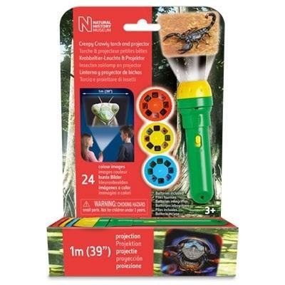 Ta poręczna latarka LED jest także projektorem fotograficznym, wyświetlającym kolorowe obrazy o szerokości do jednego metra na ścianach i sufitach.Zawiera 24 przerażające obrazy chrząszczy, karaluchów, pająków i wielu innych owadów. Latarka posiada 3 dyski slajdów z 24 kolorowymi fotografiami. Łatwo wymieniaj i zmieniaj slajdy, odciągając plastikową klapkę i wkładając wybrany dysk, a następnie obracaj dysk, aby oglądać fantastyczne kolorowe obrazy o szerokości do jednego metra. Obrazy można łatwo ustawić, obracając głowicę obiektywu. Może być również używana jako zwykła latarka bez założonych prowadnic i doskonale nadaje się do trzymania na stolikach nocnych, aby zapewnić dzieciom komfort w nocy. Mierzy 11 cm długości i około 3,5 cm średnicy w najszerszym miejscu. Zasilana bateriam i- 3 x LR44 załączonymi w zestawie.