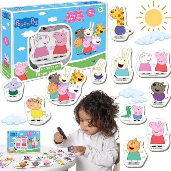 Z zestawem magnesów Świnka Peppa, codzienne zabawy dziecka staną się fascynującą przygodą. Rozwinie to wyobraźnię malucha i umożliwi mu zabawę z ulubionymi bohaterami.