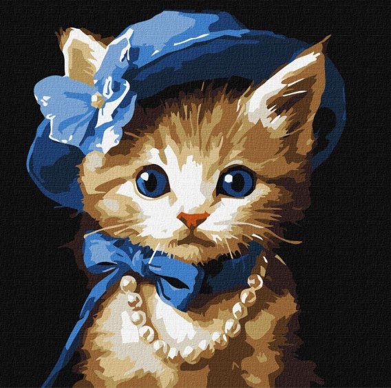 Malowania po numerach - Kotek w kapeluszu 30x30cm