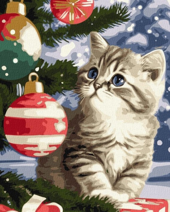 Malowanie po numerach - Kociak pod choinką 40x50cm