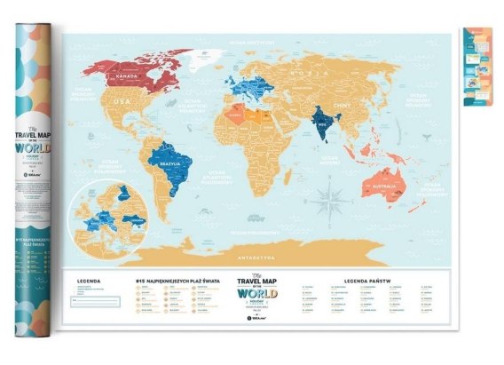 Mapa zdrapka Travel Map Lagoon World PL jest bardzo kolorową, zdrapywaną mapą świata stworzoną specjalnie na polski rynek.
