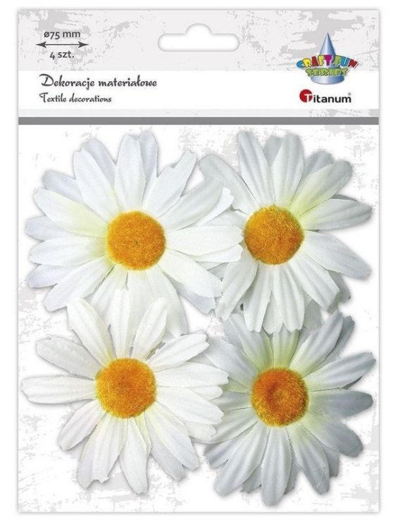 Materiałowe margerytki 3D 75mm białe 4szt