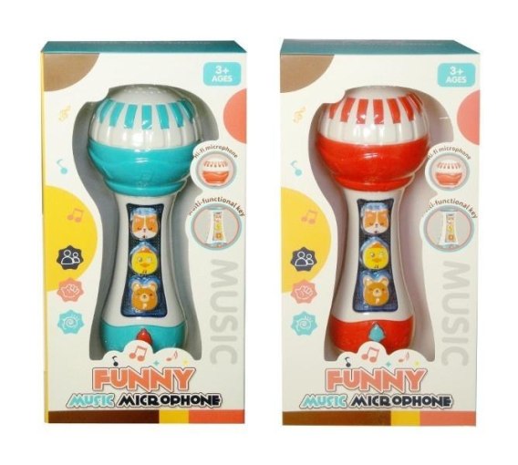 Mikrofon dla małych piosenkarek i piosenkarzy, który może być inspiracją dla muzycznych taletów. Mikrofon świeci kolorowym światełkiem, a także posiada 3 przyciski funkcyjne w kształcie zwierzątek. Zabawka działa na baterie typu AA. Baterie nie są załączone do zabawki. Produkt występuje w kilku wersjach kolorystycznych, wybierany losowo. Cena dotyczy jednej sztuki. Produkt zapakowany w kartonowe opakowanie z przezroczystym okienkiem. Zabawka dla dzieci od 3 lat. Podane wymiary są wymiarami opak