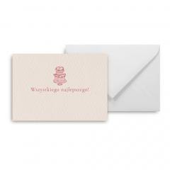Kartka w komplecie z białą kopertą, co czyni ją gotowym do wręczenia prezentem