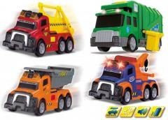 Małe pojazdy Action Series bez napędu, ze światłem i dźwiękiem, z ruchomymi elementami, do wyboru śmieciarka, laweta, wywrotka i pojazd kontenerowy, baterie: 1,5V R14/R41 (baterie w zestawie), 15-16 cm, 4 rodzaje. UWAGA! Towar wybierany losowo.