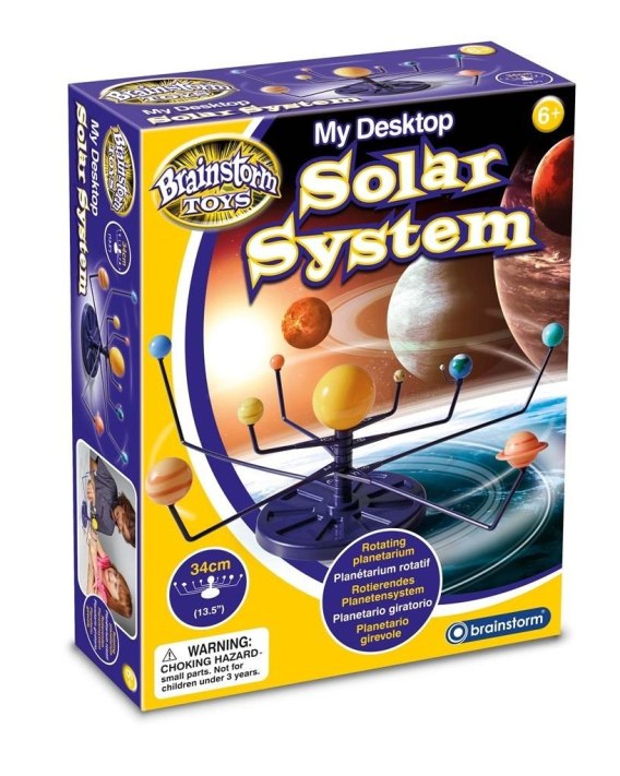 Planetarium to mechaniczny model Układu Słonecznego, który ilustruje względne pozycje i rozmiary planet, chociaż nie można uzyskać całkowicie dokładnego skalowania, biorąc pod uwagę bardzo duże odległości i różnice.Przyszli astronomowie będą zachwyceni posiadaniem tego Układu Słonecznego w miniaturze na swoim biurku lub jako dekoracja pokoju.Łatwy w montażu dzięki szczegółowym instrukcjom.Dołączone naklejki mają planetarne symbole.Całkowita rozpiętość 34 cm.