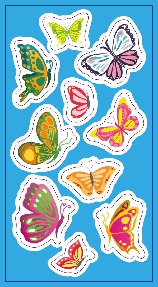 Zestaw naklejek do ozdoby zeszytów, albumów, listów, pocztówek ... 11 kolorowych motyli.