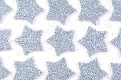Brokatowe srebrne naklejki wykonane z pianki w kształcie gwiazdek. Dają efekt elementów wypukłych na dekorowanej powierzchni. Idealne do kartek świątecznych, zimowych dekoracji, prac szkolnych, zabaw kreatywnych i DIY. Samoprzylepna ozdoba na blistrze o wymiarze: 11,5 x 25 cm.