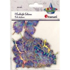 Naklejki foliowe motyle 10 wzorów tonacja fioletowo-złota 20szt.