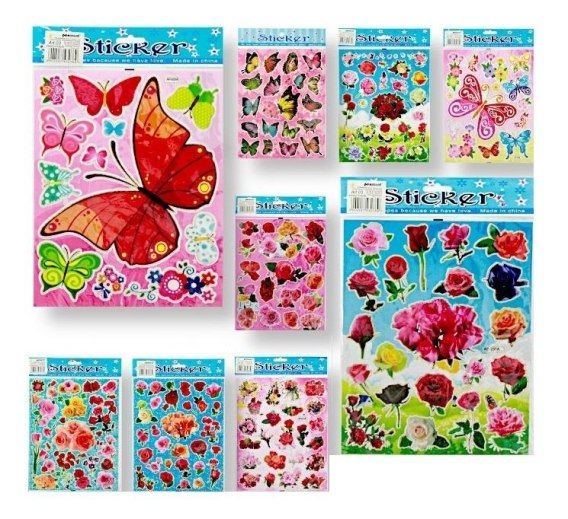 Naklejki laser kwiaty i motyle 20x25mm MIX
