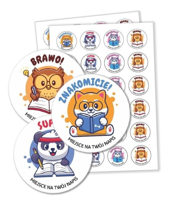 Zestaw 48 naklejek motywacyjnych ze zwierzątkami idealne jako pochwała za wykonane zadanie.
