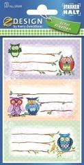 Estetycznie wykonane i praktyczne naklejki na zeszyty z uroczymi sówkami. Zestaw zawiera trzy wzory naklejek. Każdym utrzymany jest w innej kolorystyce : fioletowej, różowej oraz zielonej. To ciekawy sposób na urozmaicenie artykułów szkolnych.