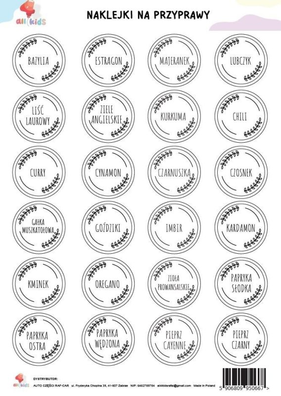 Możliwość personalizacji - napisz własne nazwy przypraw na pustych naklejkach!