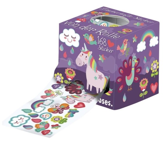 Komplet naklejek na rolce. Bardzo pięknie wykonane, ozdobią zeszyty, notesy, pojemniki. Zapakowane w tekturowe pudełko. Opakowanie zawiera ponad 168 naklejek. Nie nadają się dla dzieci poniżej 3 roku życia.