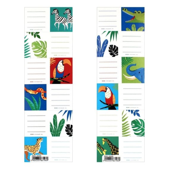 Naklejki dostępne w kilku wzorach Safari, na listku znajduje się 6 naklejek, naklejki pozwalają na opisanie zeszytów szkolnych, dzięki czemu unikniemy pomyłek przy pakowaniu tornistra do szkoły. Zestaw kolorowych naklejek na zeszyty z wizerunkami ulubionych bohaterów z kolekcji STARPAK. Zapoznaj się również z innymi produktami STARPAK! Naklejki wykonane z papieru.