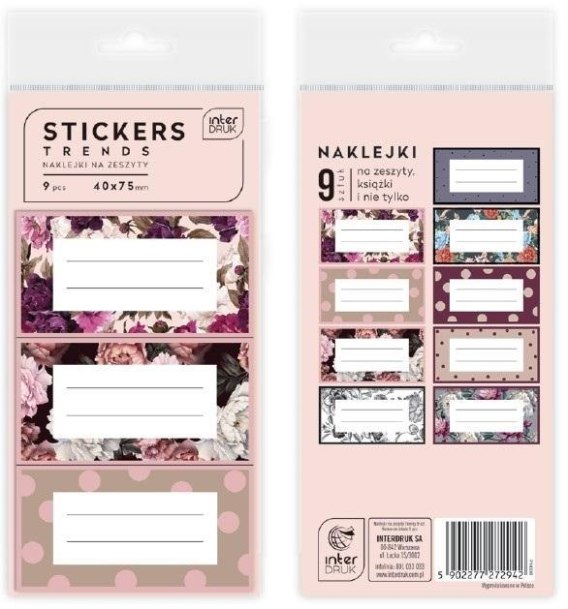 Naklejki na zeszyt. 9 sztuk w opakowaniu.