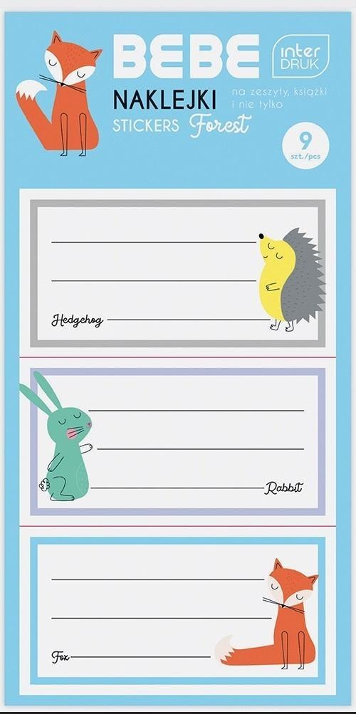 Zestaw 9 naklejek na zeszyty z podobiznami zwierzaków B&B z miejscem na podpis.