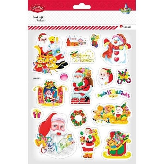 Naklejki wypukłe Mikołaje, bałwanek, wianek, napis Merry Chrismas 17szt.