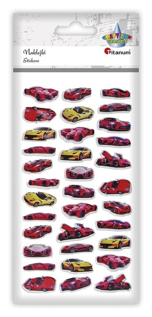 Naklejki wypukłe samochody sportowe czerwone, żółte 34szt.